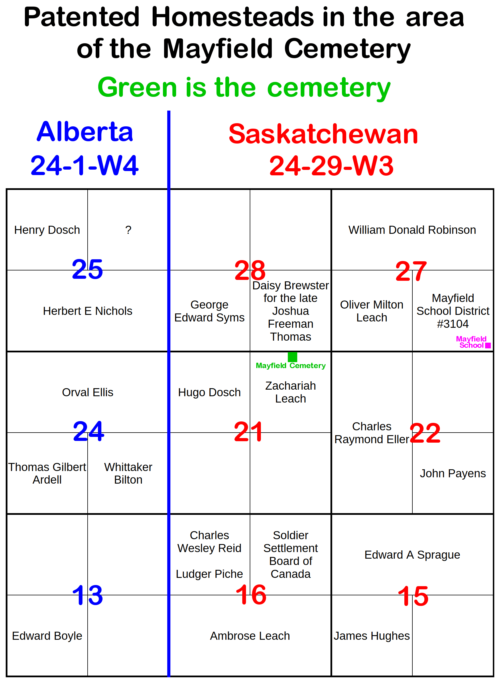 Zachariah Leach's 16 year-old daughter Martha MAY Leach died from tuberculosis, and Zachariah buried her on his Homestead, at the northern end of NE-21-24-29-W3.